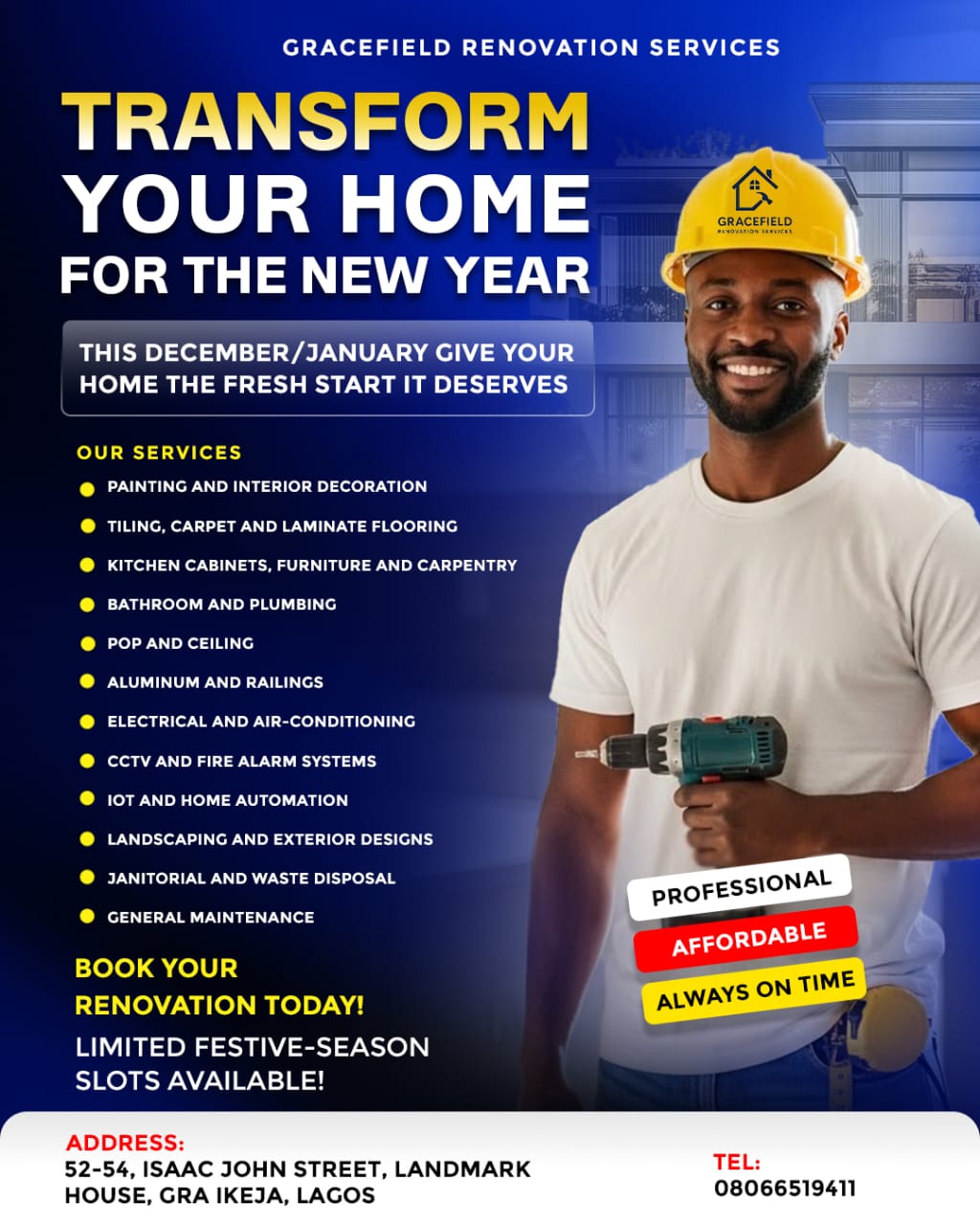 Our landscaping service enhances outdoor spaces with beautiful lawns, pavement designs, stones, lighting, and garden layouts. We turn compounds into serene, inviting environments you’ll love.